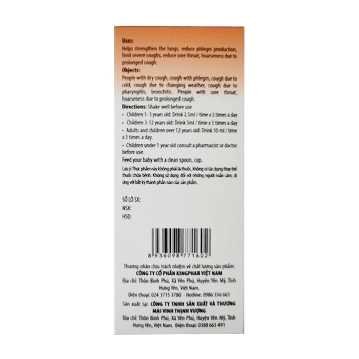 Công dụng của Brosha Kingphar 125ml - Hỗ trợ giúp bổ phế