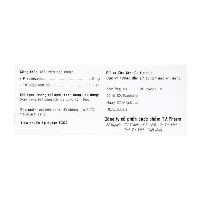 Prednisolone 5mg TV.Pharm 10 vỉ x 20 viên