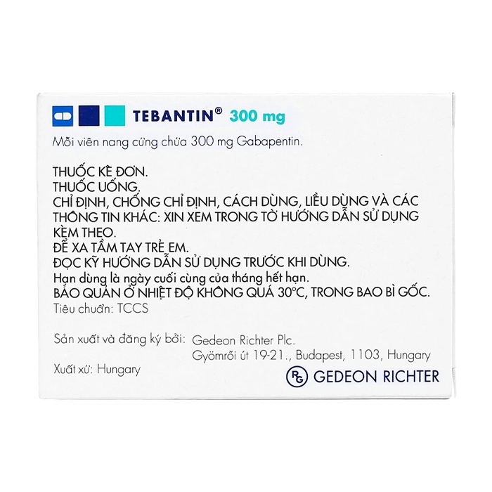 Thuốc Tebantin 300mg, Gabapentin 300mg, Hộp 50 viên
